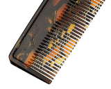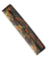 The Montage vanity comb is made from a rich Italian acetate of dark brown and caramel colors that create an eclectic pattern throughout this luxurious vanity comb. The August logo is discreetly engraved in the top corner.
