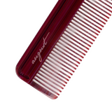 The Brick Continental vanity comb is made from a rich dark red acetate with streaks of white that make a marbled pattern throughout the hair comb. The August logo is discreetly engraved in the top corner.