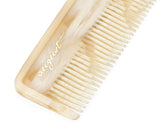 The Ivory men's vanity comb is made from a rich, ivory Italian acetate with hints of grey and white hues that create a marbled-patterned throughout this luxury comb. The August logo is discreetly stamped in gold on top corner.